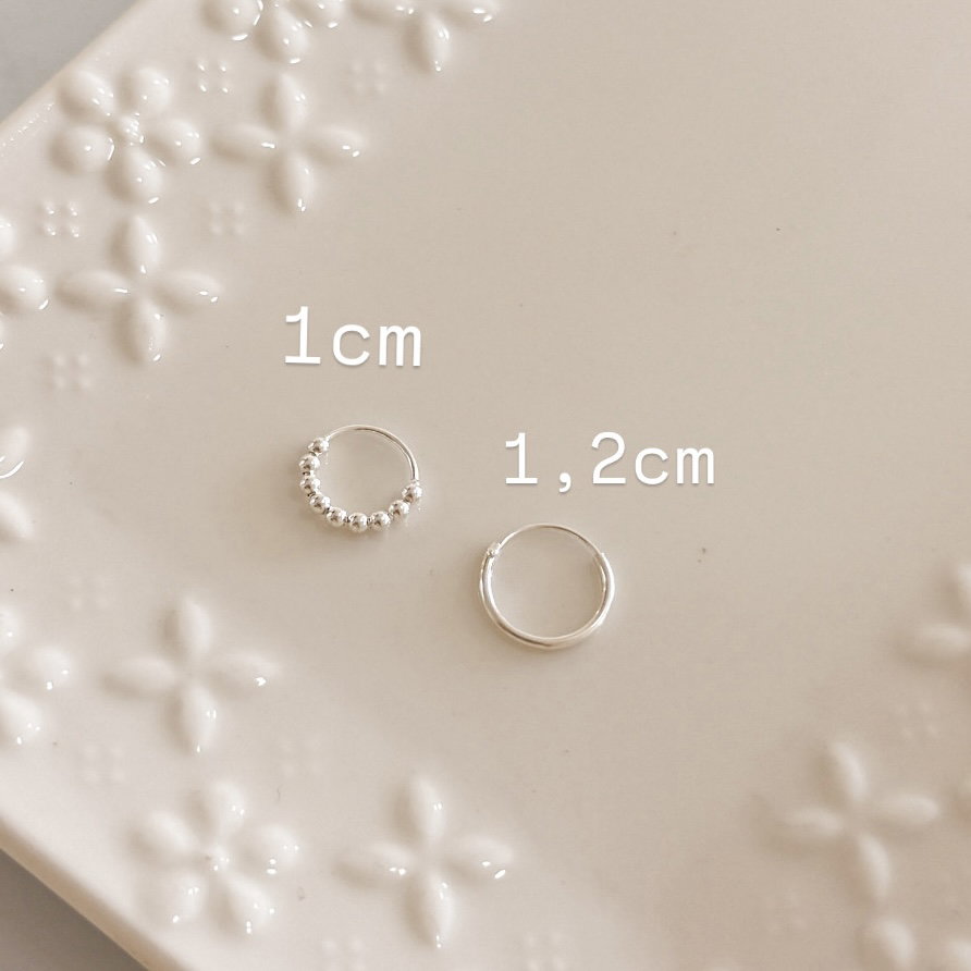 Nuestras argollitas de plata 925 son ideales para piercings de oreja, nariz, trago, hélix y más. Disponibles en diferentes tamaños para que elijas el que mejor se adapte a tu estilo y necesidad.