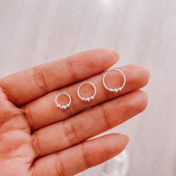Nuestras argollitas de plata 925 son ideales para piercings de oreja, nariz, trago, hélix y más. Disponibles en diferentes tamaños para que elijas el que mejor se adapte a tu estilo y necesidad.